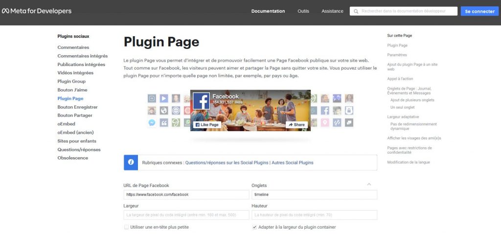 - La page Facebook doit être publique si l'on veut l'intégrer dans un site.